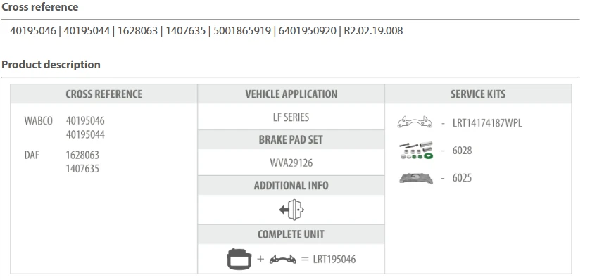 třmen brzdy RVI, VOLVO L/P - repas s držákem brzdového třmene, bez brzdových desek
